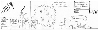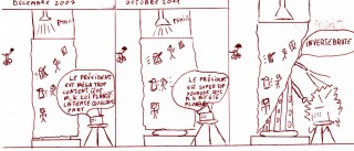 Je prends le mioche à parti, lui répond, le provoque un peu, espérant tirer un son de sa génitrice. Que dalle. Et lui continue à jouer les adultes n’importe comment, récriminant contre les repas à la cantine, la couleur des tableaux noirs et le manque d’ergonomie des craies.