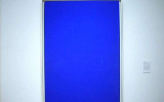 Tout au bout de la galerie, les Troisièmes non identifiés découvrent trois oeuvres d’Yves Klein. Et, alors que Pamaila contemple un monochrome du fameux bleu, hypnotique, je vois le vertige de la toile faire écho à ce qui se trouve derrière ses pupilles.
